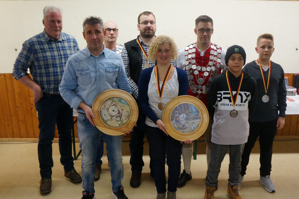 Ebenso wurde am Abend der Königsproklamation unter den 10 besten Kleinkaliberschützen eine Ehrenscheibe ausgeschossen. Diese konnte sich souverän Klaus Funk mit dem besten Schuss sichern. Einen Sachpreis in flüssiger Form für die Meistbeteiligung sicherten sich die Kleintierzüchter aus Hüttlingen mit 29 Schützen, gefolgt vom Schwäbischen Albverein (19) und der Abteilung Turnen/Leichtathletik (18). Der Damenwanderpokal ging ebenso an die Kleintierzüchter, gefolgt von den Stachelmätza I und II. Bei den Herren konnte sich die erste Mannnschaft der Kleintierzüchter vor dem Schwäbischen Albverein durchsetzen, gefolgt von der Mannschaft Krieger und Reserviesten. Die Dilettantenmeisterschaft gewann wie im Vorjahr Denise Steinacker (127 Ringe) vor Dietmar Sachsenmeier (124 Ringe) und Maximilian Raab (123 Ringe).